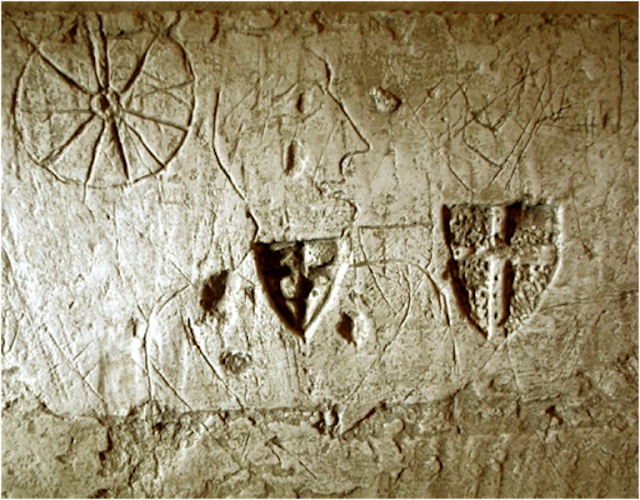Les prisonniers ont laissé un témoignage de leur passage en ces lieux sous la forme de graffitis. Ils ont gravé dans la pierre à l’aide d’une pointe métallique, des scènes d’époque et des représentations religieuses, mais aussi des écrits.